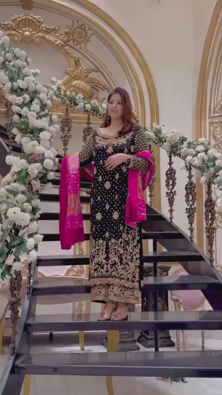 Launching New Winter Collection Beautiful Heavy Embroidery And Riveted Moti Work Top - Plazzo With Dupatta