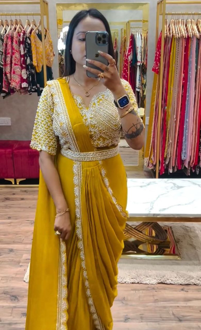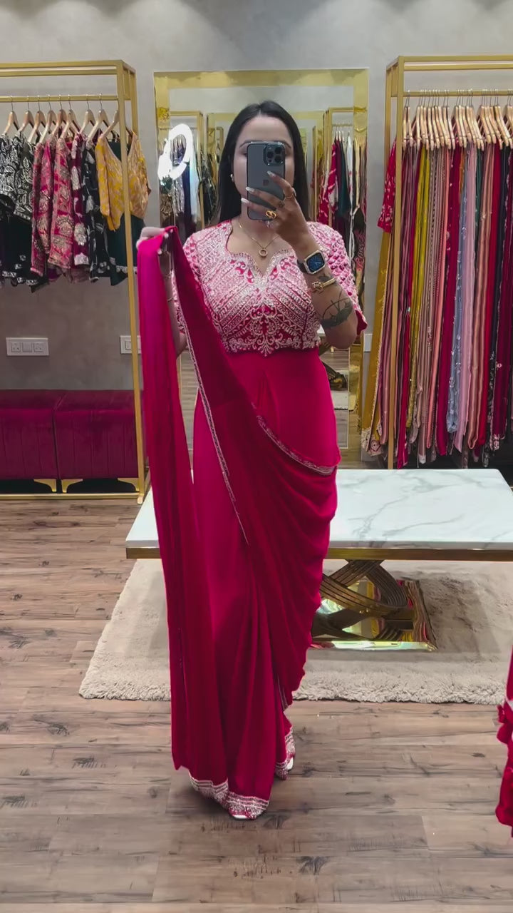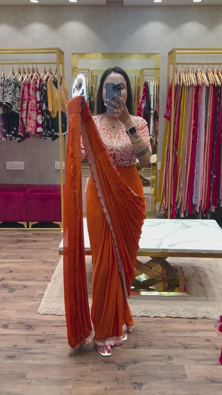 New Super Trending Embroidery cording work ready to wear saree with Embroidery Blouse