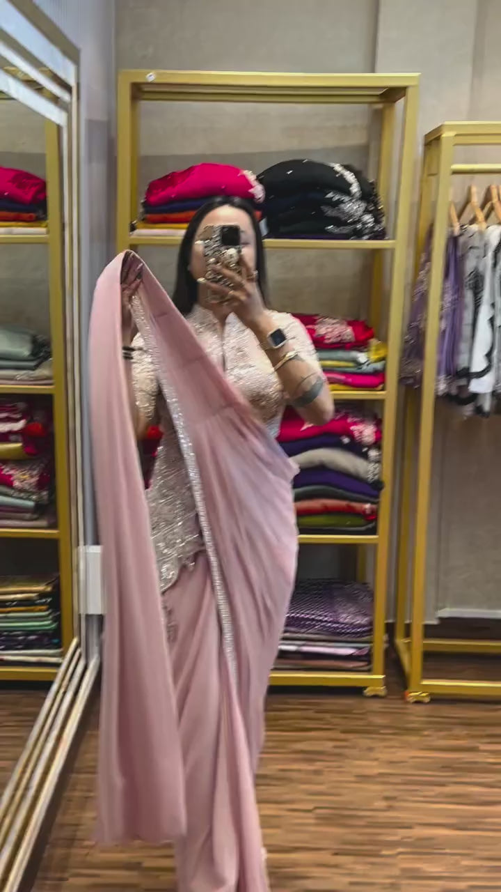 New Super Trending Embroidery cording work ready to wear saree with full koti