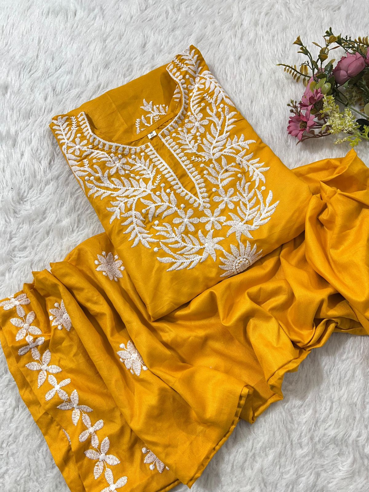 Rayon Cotton Chikankari LAKHNAWI Kurta With Palazzo